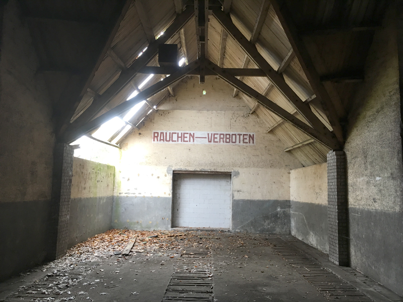 Duitse vliegtuighangar (ca. 1942) gecamoufleerd als boerenschuur. Eén van de vijf overgebleven hangars die deel uitmaakten van Fliegerhorst Deelen. Ooit stonden er rondom dit vliegveld 60 van dit soort hangars. Op ze zijmuren zijn nog de opgeschilderde boerderijraampjes te zien. De bakstenen voorgevel is na-oorlogs; het gebouw kon aan de voorzijde geheel worden geopend d.m.v. harmonikadeuren. Binnen is nog altijd het opschrift 'rauchen verboten' te lezen.