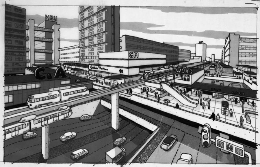 Het plan dat in 1965 werd bedacht, had als doel een nieuwe welvarende bevolking onder te brengen in een gebied dat, alhoewel niet ver van de stad gelegen, in de natuur zou liggen. Het idee was een langgerekte reeks eilanden, met de oude stad verbonden door een veertienbaans autosnelweg en een monorail in het IJmeer te leggen. Dit zou overigens in de plannen een kleiner waterplasje zijn dan vandaag, op de bouwtekeningen zijn de contouren van de nooit aangelegde Markerwaard te ontwaren. De bebouwing zou bestaan uit hoge woontorens om een zeer hoge woondichtheid te bereiken; door de oriëntering op het water en de omgeving zou de bebouwing toch niet als te versteend ervaren worden, in lijn met Le Corbusiers gedachten over de toren in het park als beste woonvorm.